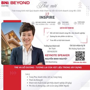 Là người làm kinh doanh, Huyền luôn tin rằng mạng lưới quan hệ chất lượng là “chìa khóa vàng” để phát triển bền vững. Mỗi buổi họp BNI là cơ hội quý giá để Huyền cập nhật góc nhìn mới, gặp gỡ những người bạn doanh nghiệp năng lượng và sáng tạo, đồng thời tìm kiếm cơ hội hợp tác ý nghĩa.